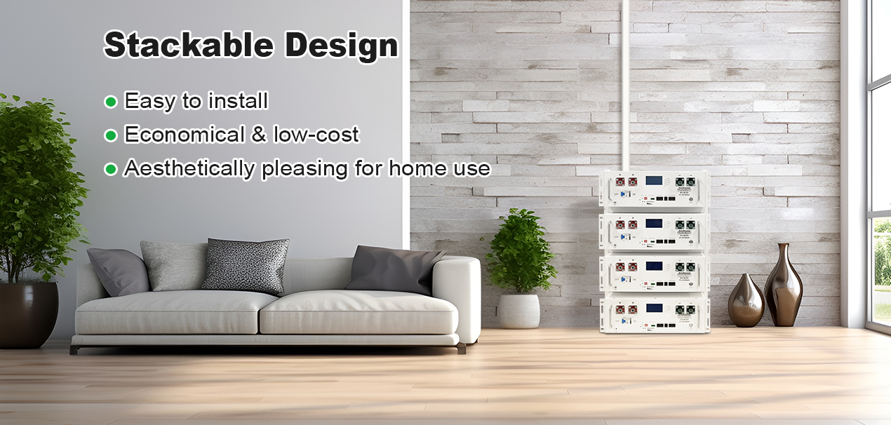 51.2V 50Ah 100Ah LiFePO4高压可堆叠家用储能锂电池