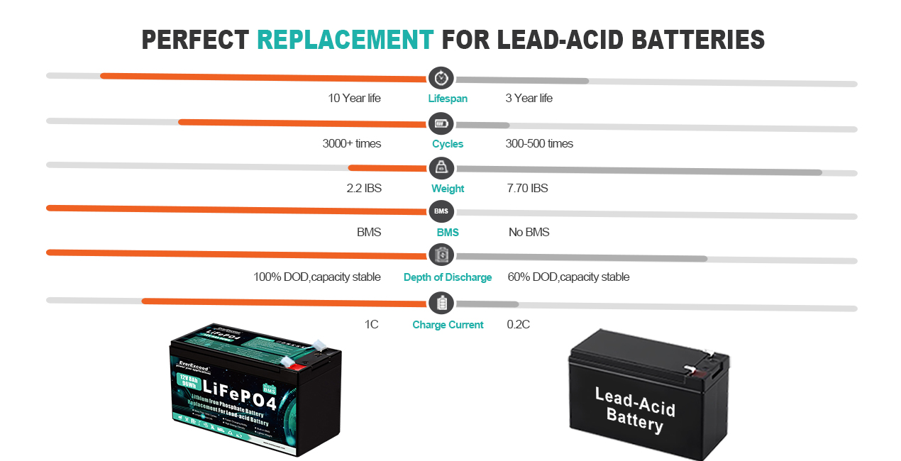 更小、更轻、充电更快:这款12伏8安时可充电电池仅重2.2磅(1公斤),是同容量铅酸电池重量的一半。铅酸电池通常以0.2°C充电,但我们的12伏电池可以以高达1C的速度充电。